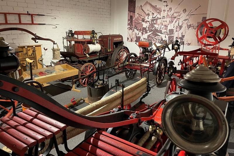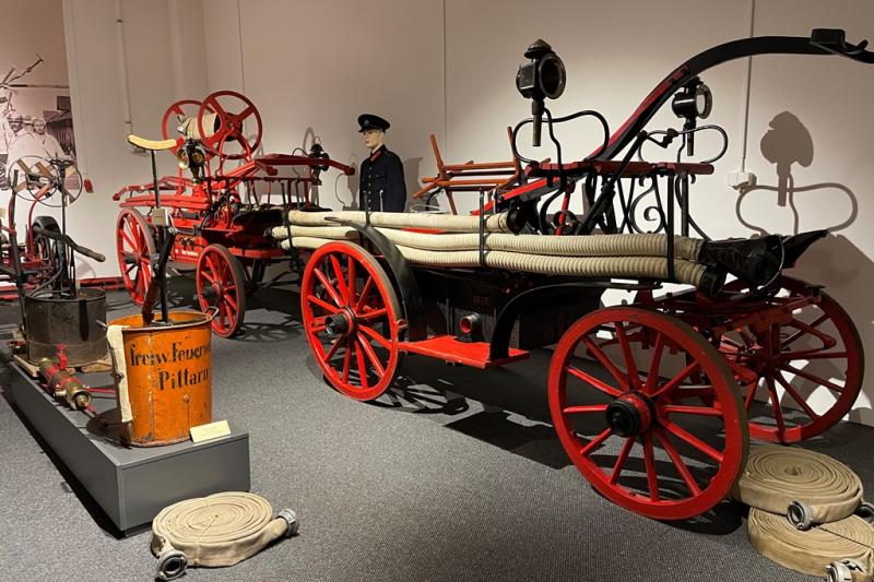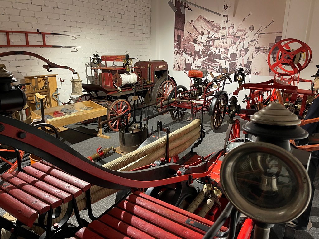 Další, již oddělená plocha, je věnována hasičství. Kromě historických stříkaček jsou zde vidět i uniformy a další hasičské náčiní. Nezajímavějším exponátem je kočárová motorová stříkačka z roku 1926, kterou zakoupila hraběnka ze zámku Pohled pro ochranu před požáry na svém panství. Stříkačka byla vyrobena v továrně R.A.Smekal, Praha Smíchov a je poháněna stabilním motorem MARS. Stříkačka se zachovala v původním stavu.