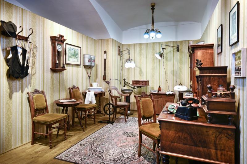 První je ordinace dentisty v měšťanském bytě. Nechybí zde například jedna z prvních vrtaček, poháněná šlapáním na pedál. Zubařský zákrok nebyl tehdy zdaleka tak příjemný jako dnes, vrtání trvalo mnohem déle a o nějakém chlazení vodou nebyla ani řeč. Druhá ordinace dentisty je z let 1940 – 1960, její součástí je například i funkční vrtačka poháněná elektromotorem, která byla do Čech po válce přivezena z Ameriky.